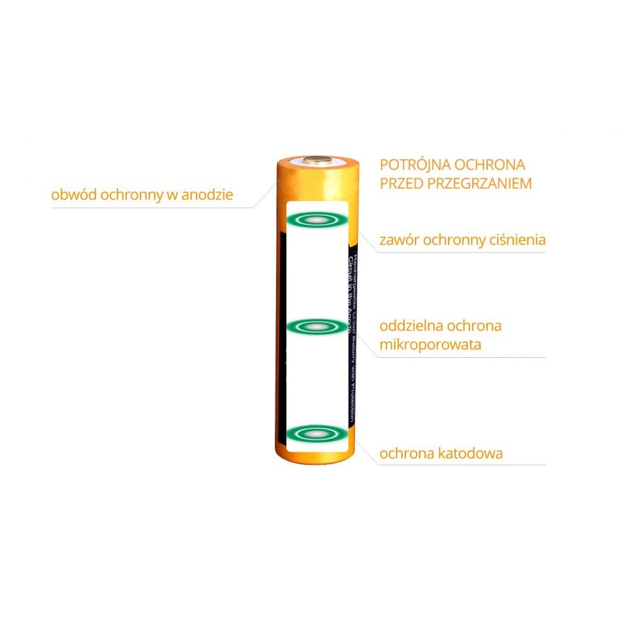 - Zabezpieczenie przed przegrzaniem – chroni ogniwo przed przegrzaniem w trakcie intensywnej pracy.