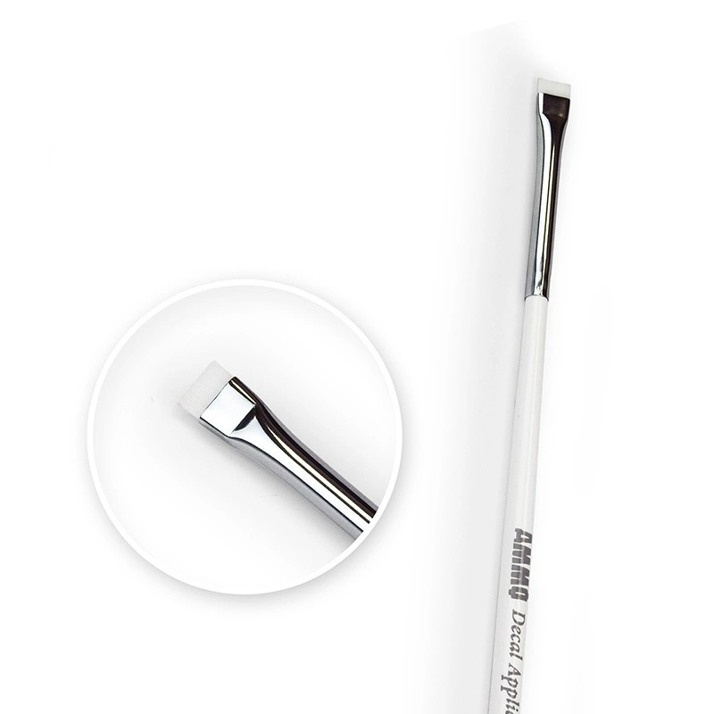 Ammo: Decal Application Brush 3 to największy z serii specjalistycznych pędzli od Ammo by Mig Jimenez, przeznaczony do aplikacji kalkomanii (decalek) na modelach redukcyjnych i figurkach. Zaprojektowany z myślą o pracy z dużymi powierzchniami i większymi arkuszami kalkomanii, doskonale sprawdzi się przy ozdabianiu czołgów, samolotów, statków czy elementów dioram.