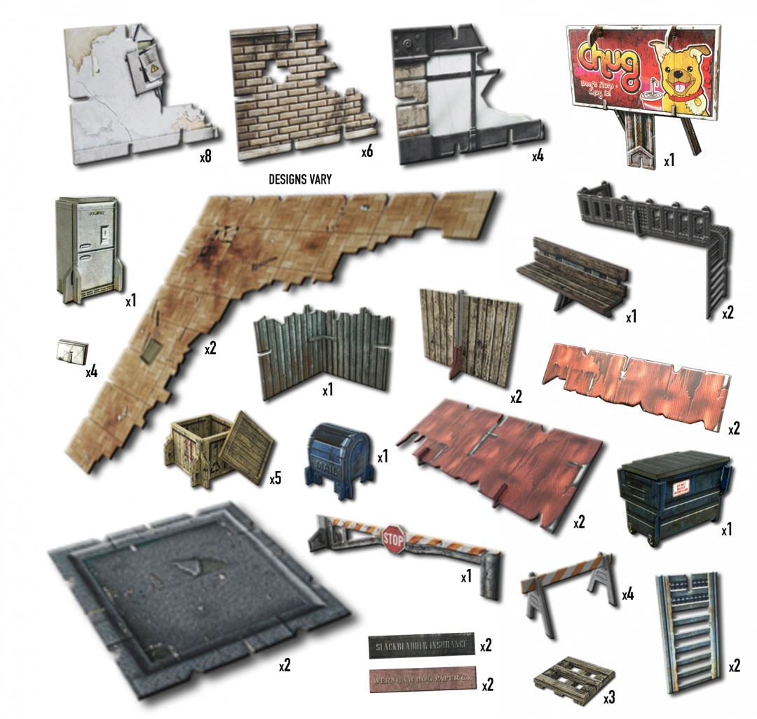W realiach końca świata ulice stają się areną chaosu – pełną zombie, gangów i bandytów. Dzięki temu zestawowi odtworzysz te dramatyczne sceny w pełni trójwymiarowym środowisku, gotowym do gry bez konieczności malowania.