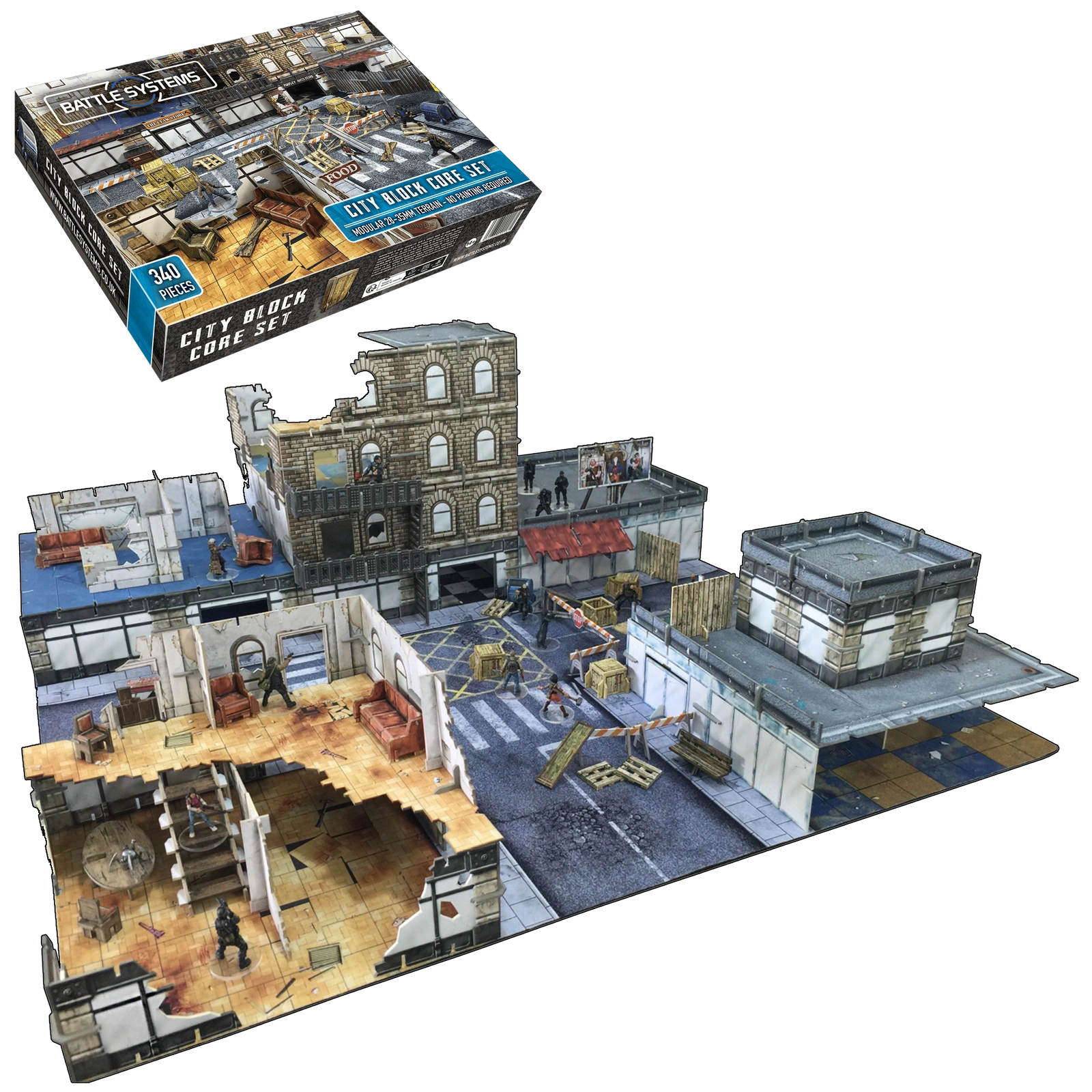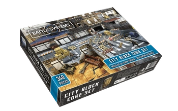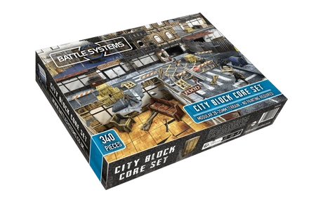 Battle Systems – City Block Core Set to kompletny zestaw terenowy do gier bitewnych i przygodowych w skali 28–35 mm, osadzonych w klimatach współczesnych oraz postapokaliptycznych. Pozwala zbudować wielopoziomową makietę miejską o wymiarach 60 × 60 cm (2′ × 2′) – od biurowców, przez sklepy, aż po mieszkania prywatne.