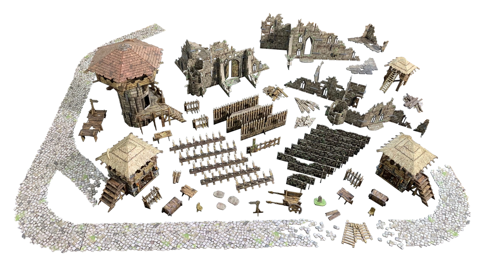 Zestaw zawiera w pełni szczegółowe wnętrza, zdejmowane dachy, schody, platformy i wieże, idealne do tworzenia niepowtarzalnych scenariuszy – zarówno do skirmishy, jak i dużych bitew. Wszystkie elementy wykonane są z wysokiej jakości kartonu o dużej gęstości, nadrukowanego dwustronnie w pełnym kolorze.