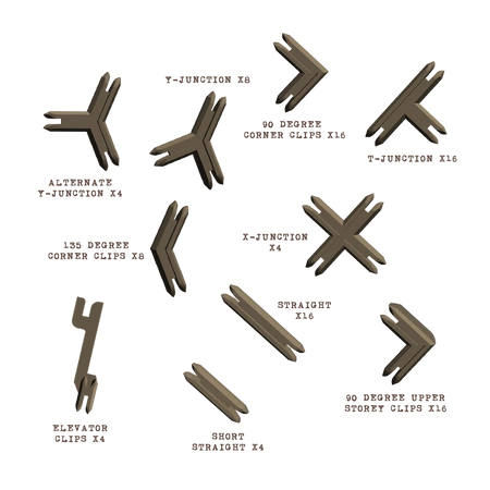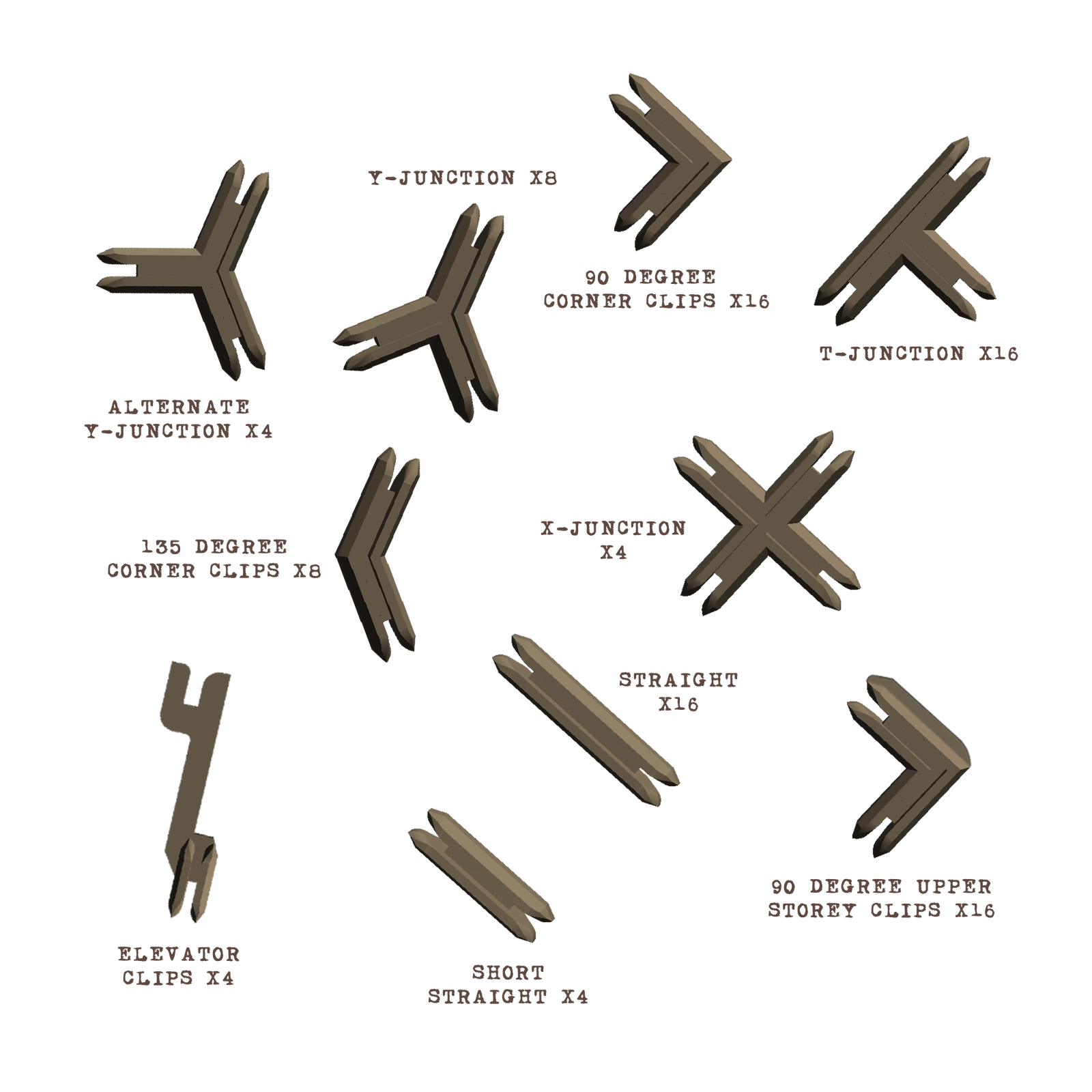 Stabilizacja pięter: używaj Upper Storey Clips oraz Elevator Clips do konstrukcji wielopoziomowych.
