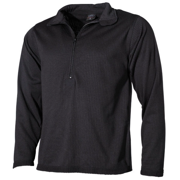 Bluza Thermo Level 2 Gen.3 marki MFH w kolorze czarnym to wysokiej jakości odzież termoaktywna, opracowana według wojskowego standardu GEN III ECWCS (Extended Cold Weather Clothing System), stosowanego w armii USA. Stworzona z myślą o zapewnieniu maksymalnego komfortu cieplnego, doskonale sprawdzi się jako warstwa pośrednia podczas działań w chłodnym lub zimnym klimacie.