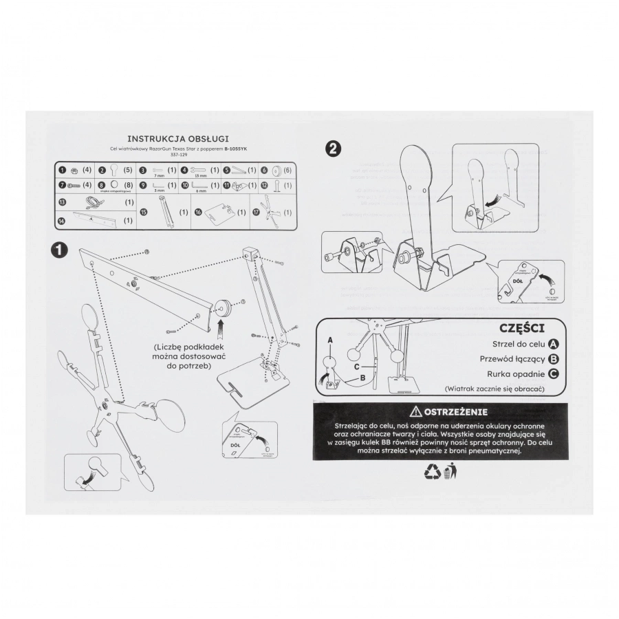 RazorGun Texas Star z popperem to profesjonalny cel reaktywny do wiatrówek, łączący elementy dynamicznego strzelectwa z możliwością treningu precyzyjnego. Wyposażony w obrotową tarczę typu Texas Star oraz dodatkowy popper, pozwala rozwijać celność, refleks i umiejętność prowadzenia ognia do ruchomych celów.