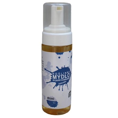 Sposób użycia: wytrzyj pędzel z pozostałości farby. Wciśnij pompkę, aby nabrać na rękę trochę mydła w pianie. Pocieraj włosie okrężnymi ruchami. Spłucz pędzel czystą wodą.