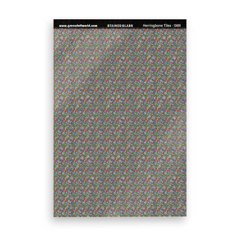 Zwiększ estetykę swoich projektów z GSW - Herringbone Tiles Stained Glass – witraż w geometrycznym wzorze jodełki, który doda głębi i realizmu Twoim miniaturom!
