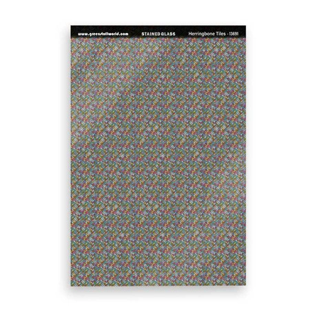 GSW - Herringbone Tiles Stained Glass to witraż w geometrycznym wzorze jodełki, który stanowi doskonały sposób na wprowadzenie autentycznych, kolorowych detali do miniaturowych scenek, domków dla lalek, dioram i modeli. Wykonany z wysokiej jakości przezroczystych plastikowych arkuszy, ten witraż zapewnia ostry, wyraźny nadruk, który imituje piękno tradycyjnych witraży, nadając każdemu projektowi profesjonalny i realistyczny wygląd.
