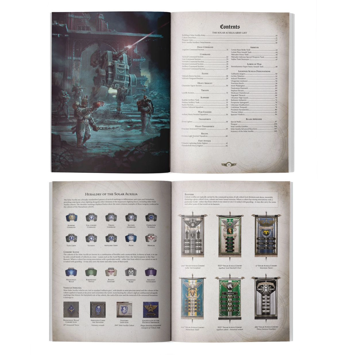 Ten podręcznik zawiera wszystkie zasady potrzebne do budowania i dowodzenia siłami Solar Auxilia – od klasycznych jednostek piechoty, przez pojazdy opancerzone, aż po zróżnicowane uzbrojenie i wyjątkowe zasady frakcyjne.