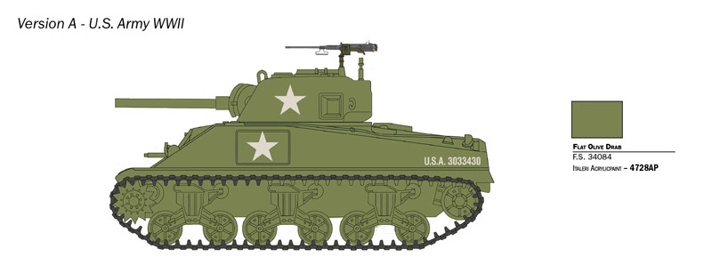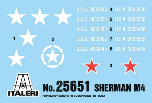 Zestaw umożliwia zbudowanie dwóch wersji czołgu Sherman M4: amerykańską i radziecką, za pomocą dołączonych naklejek.