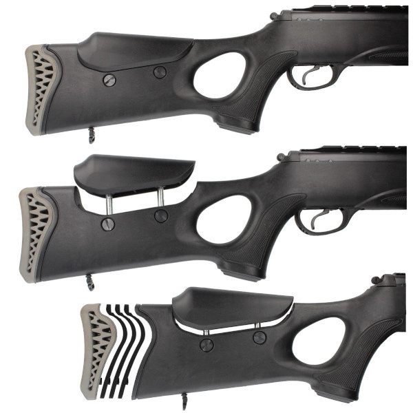 Osada - ergonomiczna z otworem na kciuk TH (ThumbHole). Wykonana z wytrzymałego odpornego na uszkodzenia mechaniczne polimeru w kolorze czarnym. Chwyt pistoletowy oraz ryflowana środkowa część łoża gwarantują pewny chwyt, również wilgotnymi dłońmi.