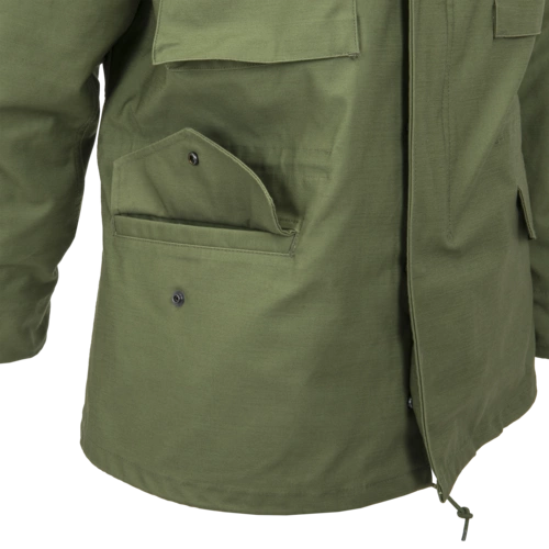 Kurtka M65 w kolorze czarnym to ponadczasowy model stworzony do działań w wymagającym terenie, a jednocześnie idealny do codziennego użytkowania. Luźny krój, mocny materiał NyCo Sateen oraz ciepła podpinka gwarantują komfort i ochronę w różnych warunkach pogodowych – od jesiennego chłodu po zimowe mrozy. Dodatkowe zabezpieczenia, takie jak listwa termiczna, kołnierz ze stójką oraz regulowane mankiety, zwiększają ochronę przed zimnem i wiatrem.