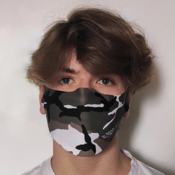 Maseczka wielokrotnego użytku, ochronna z grafiką na całej powierzchni. Maseczka dopasowuje się do kształtu twarzy, jest wygodna w noszeniu, nie powoduje otarć oraz co najważniejsze nie sprawia kłopotów z oddychaniem. Maseczka zapewnia swobodny przepływ powietrza, co ogranicza potliwość i gromadzenie wilgoci wewnątrz maski przy zachowaniu odpowiedniej izolacji od czynników zewnętrznych. Cała konstrukcja maseczki jest wykonywana z jednego kawałka tkaniny metodą cięcia laserowego. Dzięki wykorzystania takiej technologi ograniczyliśmy ilość bezpośredniego kontaktu osób z produktem.