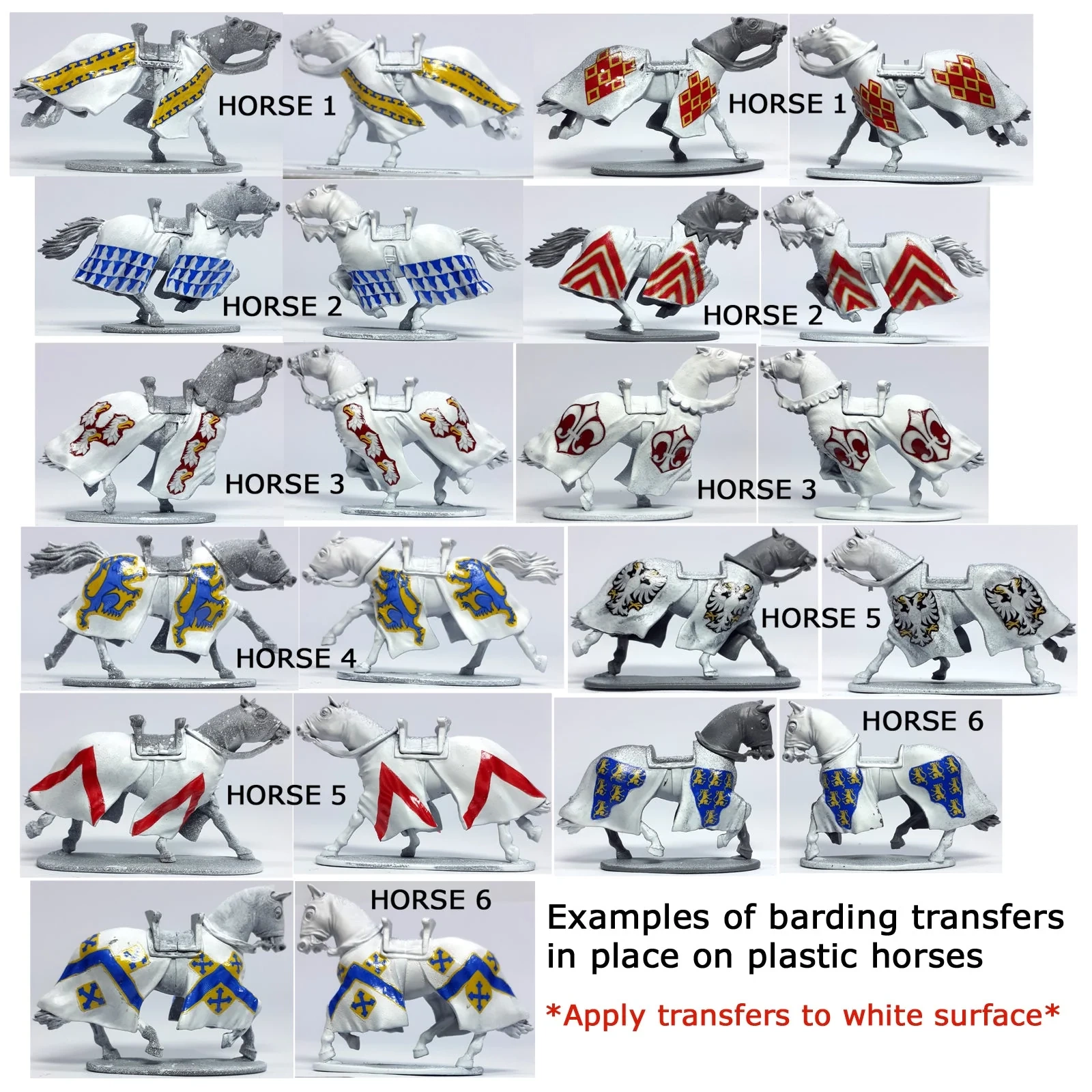 Kalkomanie na 6 bardingów (uzbrojeń ochronnych dla koni)