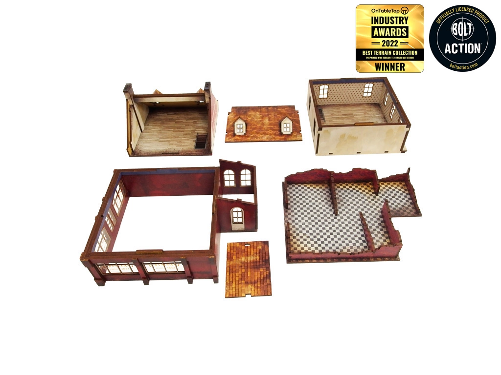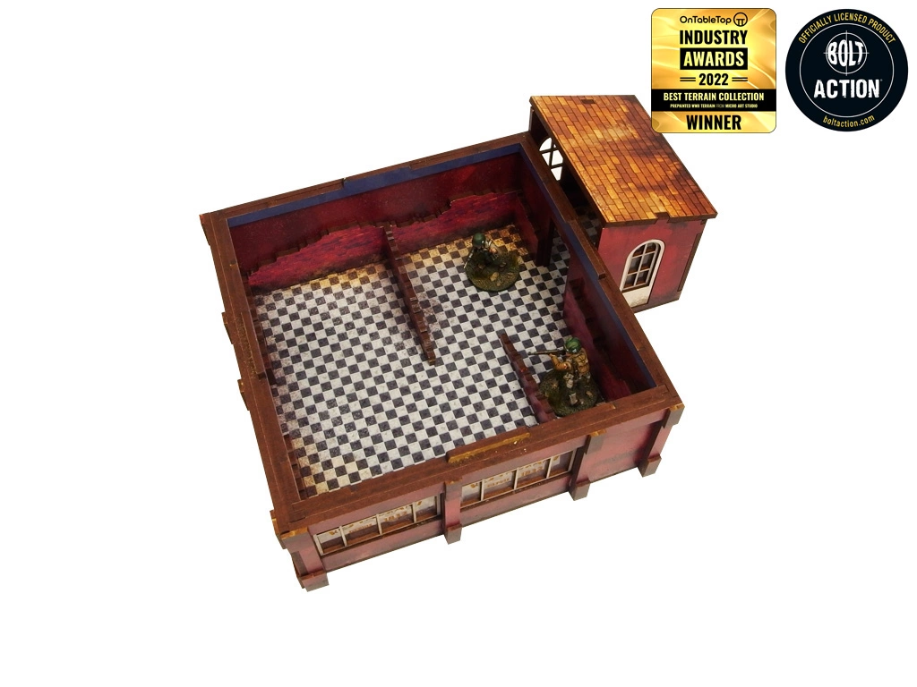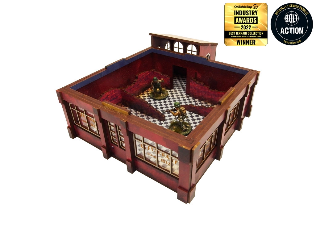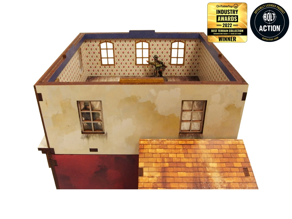 Trzypoziomowy budynek restauracji Normandii z okresu II wojny światowej, wykonany z wielokolorowych, przedsprzedawanych (drukowanych metodą UV) elementów. Posiada dostępne kolorowe wnętrza, zdejmowane poziomy oraz zdejmowany zrujnowany parter, zapewniając autentyczne wrażenia z epoki. Model oferuje wystarczająco miejsca na cały oddział piechoty wewnątrz. W zestawie znajdują się również przezroczyste akrylowe szyby okienne, wycięte wcześniej.