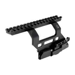 Boczny montaż ACCU-SYNC® Leapers UTG QR AK do karabinów z rodziny AK z górną szyną montażową Picatinny MIL-STD-1913 oraz dwoma bocznymi gniazdami M-LOK®, oferuje możliwość zamocowania dodatkowych akcesoriów strzeleckich.