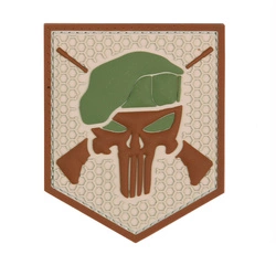 Naszywka Commando Punisher Coyote to stylowy, trójwymiarowy emblemat, który doskonale uzupełnia taktyczny ekwipunek. Wykonana z trwałego materiału PVC, odporna na warunki atmosferyczne, jest idealnym dodatkiem do kamizelek, plecaków czy odzieży wojskowej.