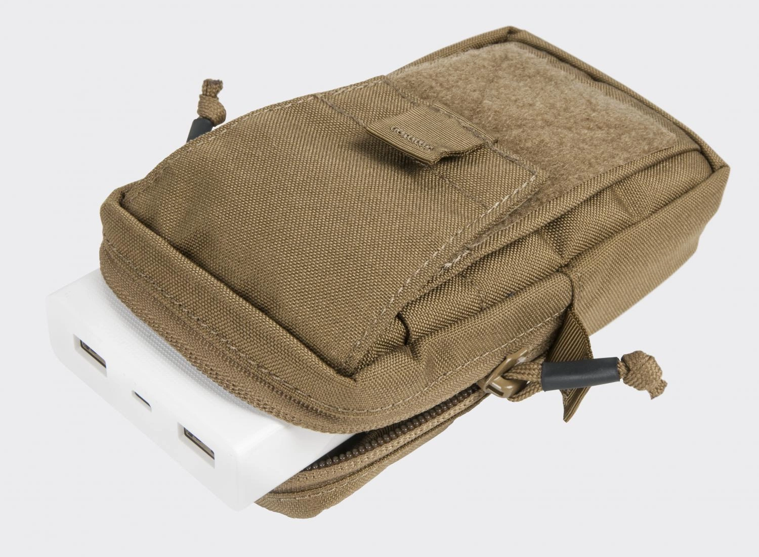 Średniej wielkości, wyściełana kieszeń na urządzenia elektroniczne, przeznaczona do noszenia pionowo na szelce plecaka lub platformie MOLLE/PALS. Zmieszczą się w niej smartfony, urządzenia GPS, przybory do pisania, itp.
