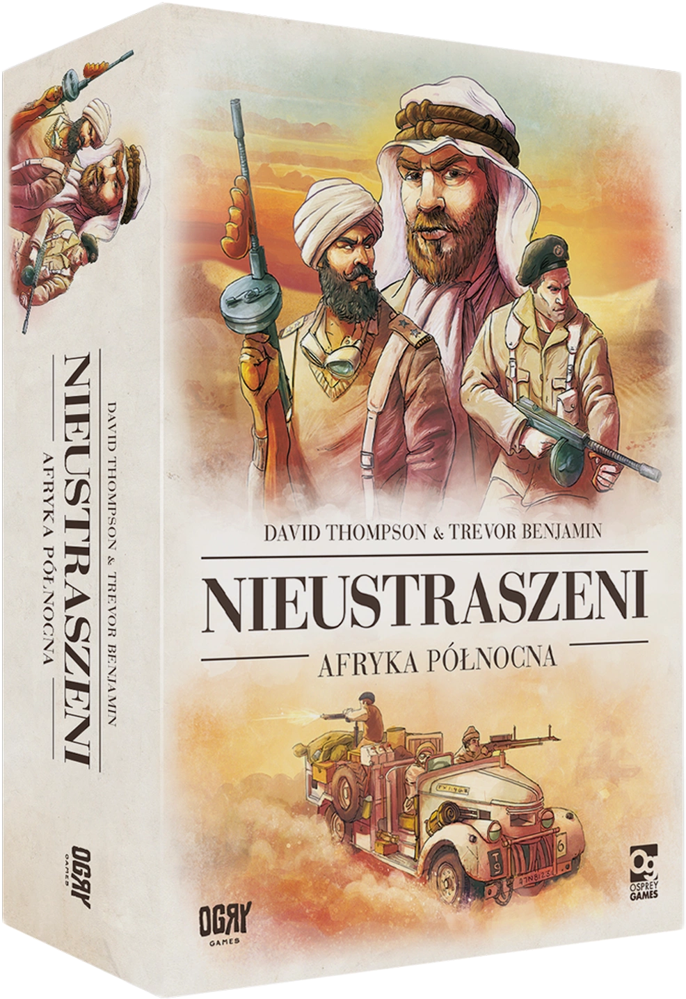 Nieustraszeni: Afryka Północna to samodzielna gra planszowa z serii „Nieustraszeni”, przenosząca graczy na gorące, pełne niebezpieczeństw piaski Północnej Afryki. Lato 1940 roku. Kampania afrykańska właśnie się rozpoczęła, a Ty obejmujesz dowództwo nad elitarną brytyjską jednostką LRDG lub nad konwencjonalnymi siłami włoskimi. Twoim zadaniem będzie zdobywanie strategicznych pozycji, przeprowadzanie śmiałych rajdów i utrzymywanie kluczowych celów w warunkach ekstremalnej asymetrii sił i terenu.