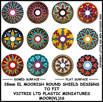 Norman Shield Designs 16 to zestaw wysokiej jakości kalkomanii przedstawiających mauretańskie wzory do okrągłych tarcz. Produkt został zaprojektowany specjalnie z myślą o figurkach z zestawu Victrix Norman Cavalry, jednak może być z powodzeniem używany również z innymi modelami historycznymi. Arkusz zawiera 12 unikalnych, szczegółowo odwzorowanych wzorów, które dodadzą Twoim miniaturom charakteru i realizmu.