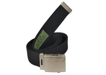 Pasek do spodni parciany koloru czarnego z błyszczącą metalową klamrą.