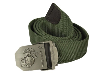 Parciany pas do spodni ze srebrną klamrą z symbolem Korpusu Piechoty Morskiej. Taśma paska jest koloru zielonego i została zakończona metalowym ściskiem zabezpieczającym przed rozwarstwianiem się oraz ułatwiającym przewlekanie przez szlufki.