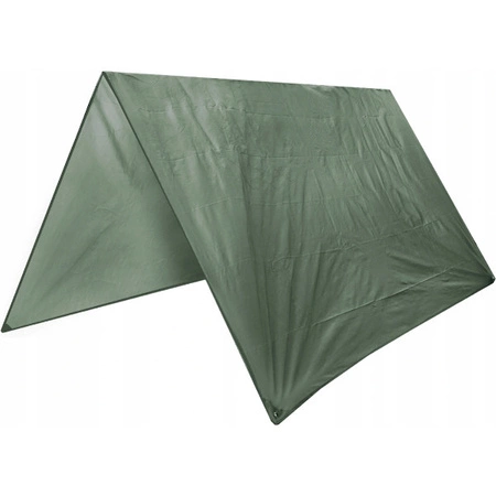 Płachta biwakowa MFH 5x6 m OLIVE to solidny, wodoodporny tarp przeznaczony dla miłośników outdooru, survivalu i bushcraftu. Wykonana z wytrzymałego poliestru 190T i pokryta impregnatem hydrofobowym, zapewnia skuteczną ochronę przed deszczem, wiatrem i słońcem. Duża powierzchnia oraz aż 16 metalowych oczek dają szerokie możliwości konfiguracji — od klasycznego zadaszenia po schronienie biwakowe czy osłonę namiotu.