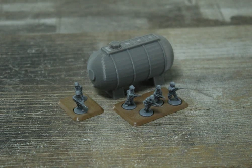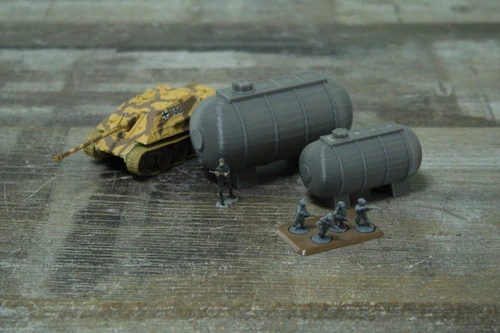 Rozbuduj swoje post-sowieckie i wojenne makiety stołowe z Airfield Fuel Tank w skali 28mm, idealnym do gier takich jak Flames of War, Bolt Action czy Chain of Command. Ten w pełni 3D drukowany model przedstawia klasyczny zbiornik paliwa lotniskowego, który doda realizmu każdej scenie lotniczej lub wojskowej.