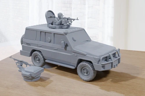 Dodaj do swojej kolekcji realistyczny Land Cruiser Armored Common w skali 28mm, idealny do nowoczesnych gier bitewnych i scenariuszy RPG. Ten w pełni detaliczny model pojazdu terenowego został wydrukowany w najwyższej jakości żywicy 3D, co gwarantuje wyjątkową trwałość i precyzję odwzorowania detali. Model doskonale sprawdzi się jako element stołu bitewnego lub w dioramach wojskowych.