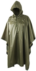 Nieprzemakalna, szybko schnąca peleryna przeciwdeszczowa, wykonana z materiału Rip-stop Poliester. Poncho posiada zatrzaski umożliwiające zrobienie rękawów, lub połączenie dwóch takich samych peleryn razem. Kaptur wyposażony jest w sznurkowy ściągacz. Duża zaleta peleryny to niewielka waga i małe wymiary po złożeniu - pakowane w woreczek o wymiarach 14 x 22 cm.