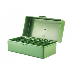 Pudełko na 50 szt naboi karabinowych kalibru 223rem. Wykonane z twardego tworzywa sztucznego w kolorze zielonym. Niezbędne przy wypadzie na strzelnicę.Zapewnia lepszą ochronę amunicji niż standardowe papierowe opakowania producenta.