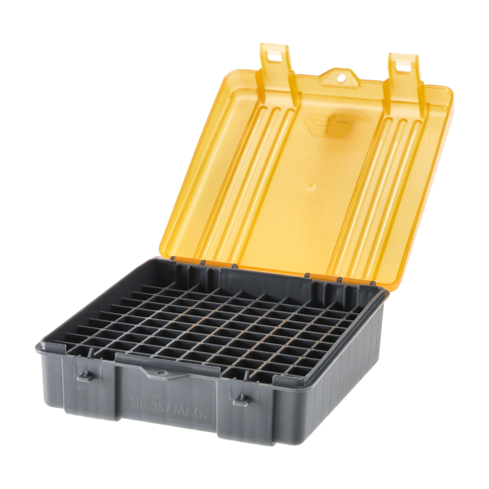 Plano 122500 to wytrzymałe pudełko transportowe, które pozwala na bezpieczne i wygodne przechowywanie do 100 sztuk w kalibrach .380 Auto, .357 Magnum, .38 Special oraz .38 S&W. Solidna konstrukcja z polimeru chroni zawartość przed uszkodzeniem i zabrudzeniem, a praktyczne przegródki utrzymują porządek i zapobiegają przemieszczaniu się elementów.