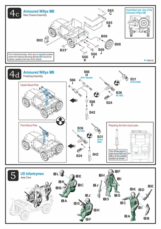 - 4x Figurki załogi: Figurki żołnierzy piechoty amerykańskiej (US Infantrymen).