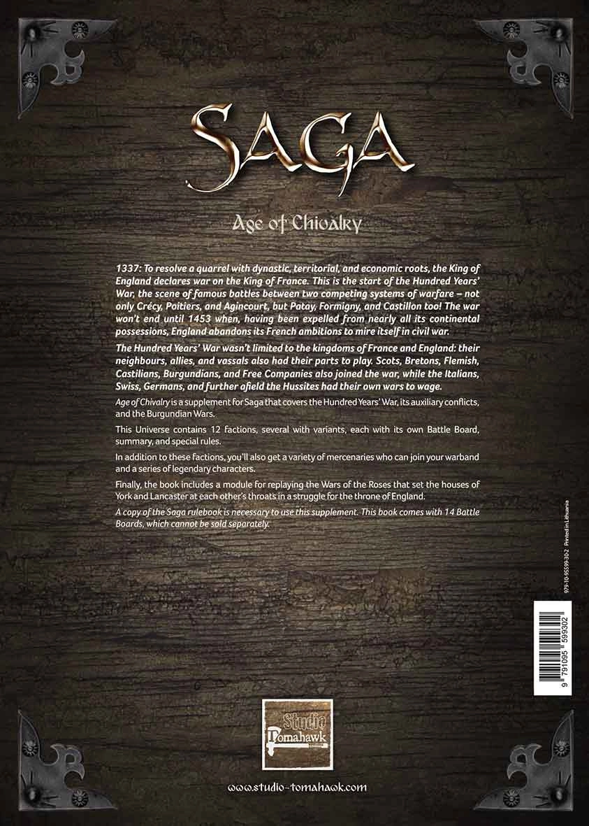 SAGA: Age of Chivalry to najnowszy dodatek do kultowego systemu gier bitewnych SAGA, który przenosi graczy w fascynującą epokę rycerskości, wojen dynastycznych i wielkich konfliktów średniowiecznej Europy. Skoncentrowany na wojnach stuletnich pomiędzy Anglią a Francją (1337–1453), suplement ten oddaje ducha jednej z najdłuższych i najbardziej dramatycznych serii konfliktów w historii Zachodu.