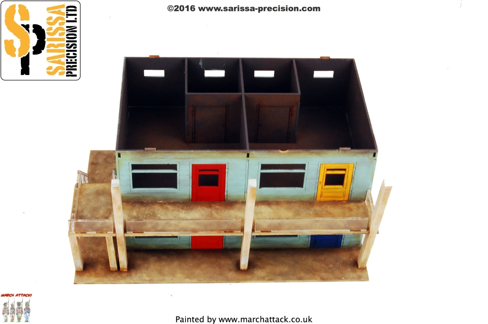 SARISSA – Motel Rooms (Left) to model w skali 28 mm przedstawiający charakterystyczne pokoje motelowe, które od lat 20. XX wieku stały się symbolem amerykańskiej kultury podróży. Rozwój systemu autostrad sprawił, że motele zaczęły wyrastać przy drogach, oferując tanie i wygodne noclegi dla zmęczonych podróżnych. Teraz możesz odtworzyć ich klimat na swoim stole do gier!