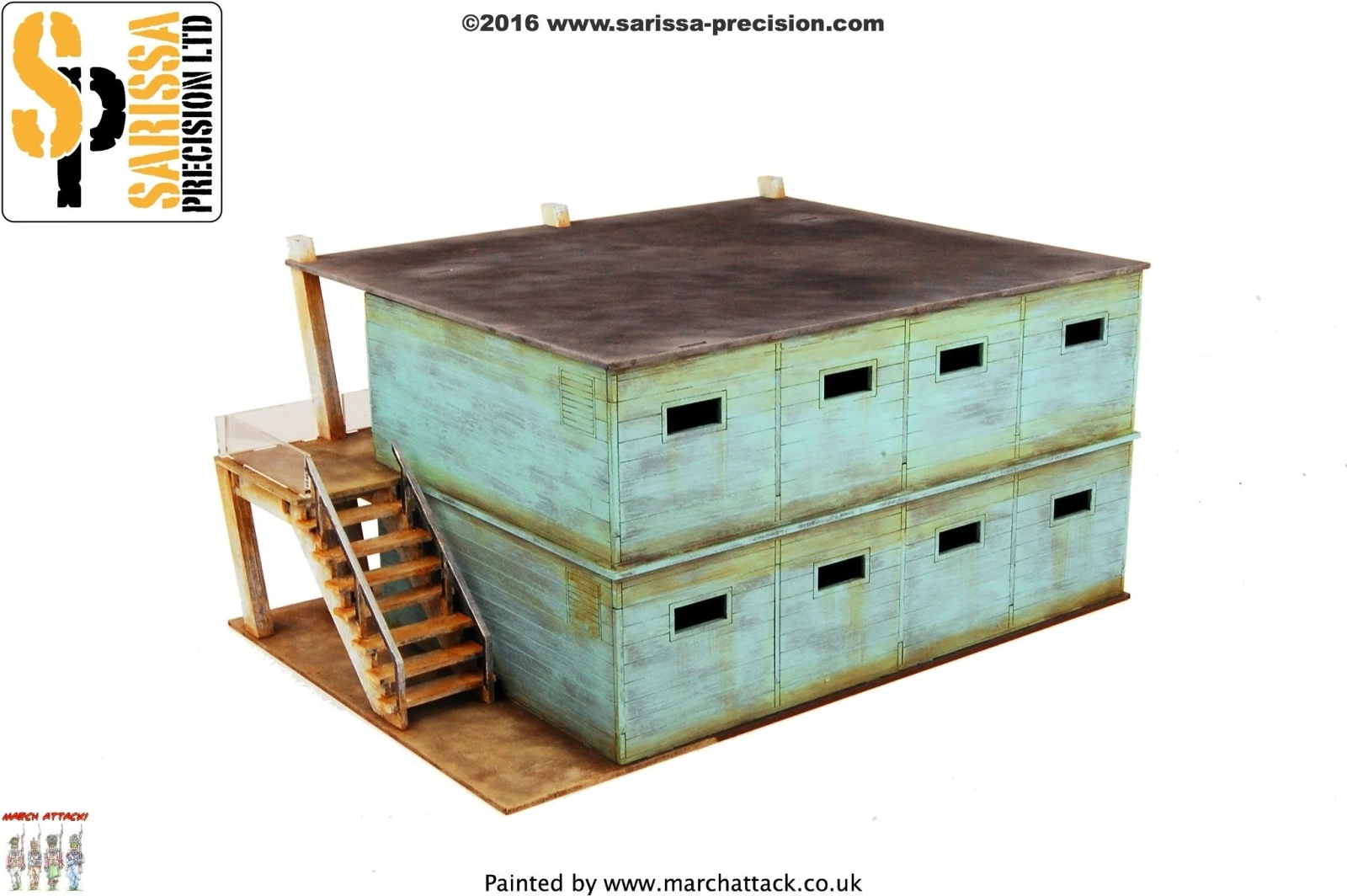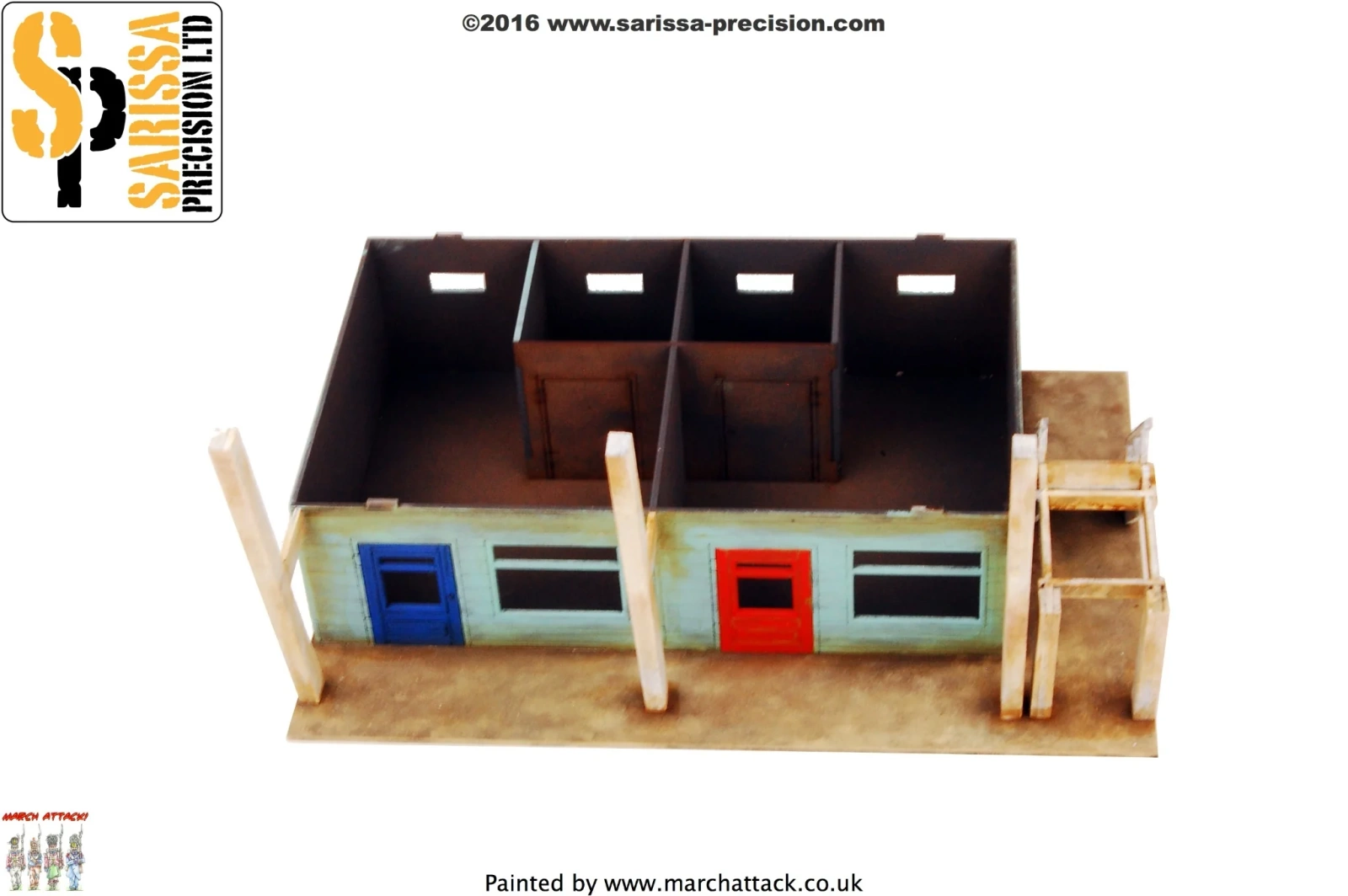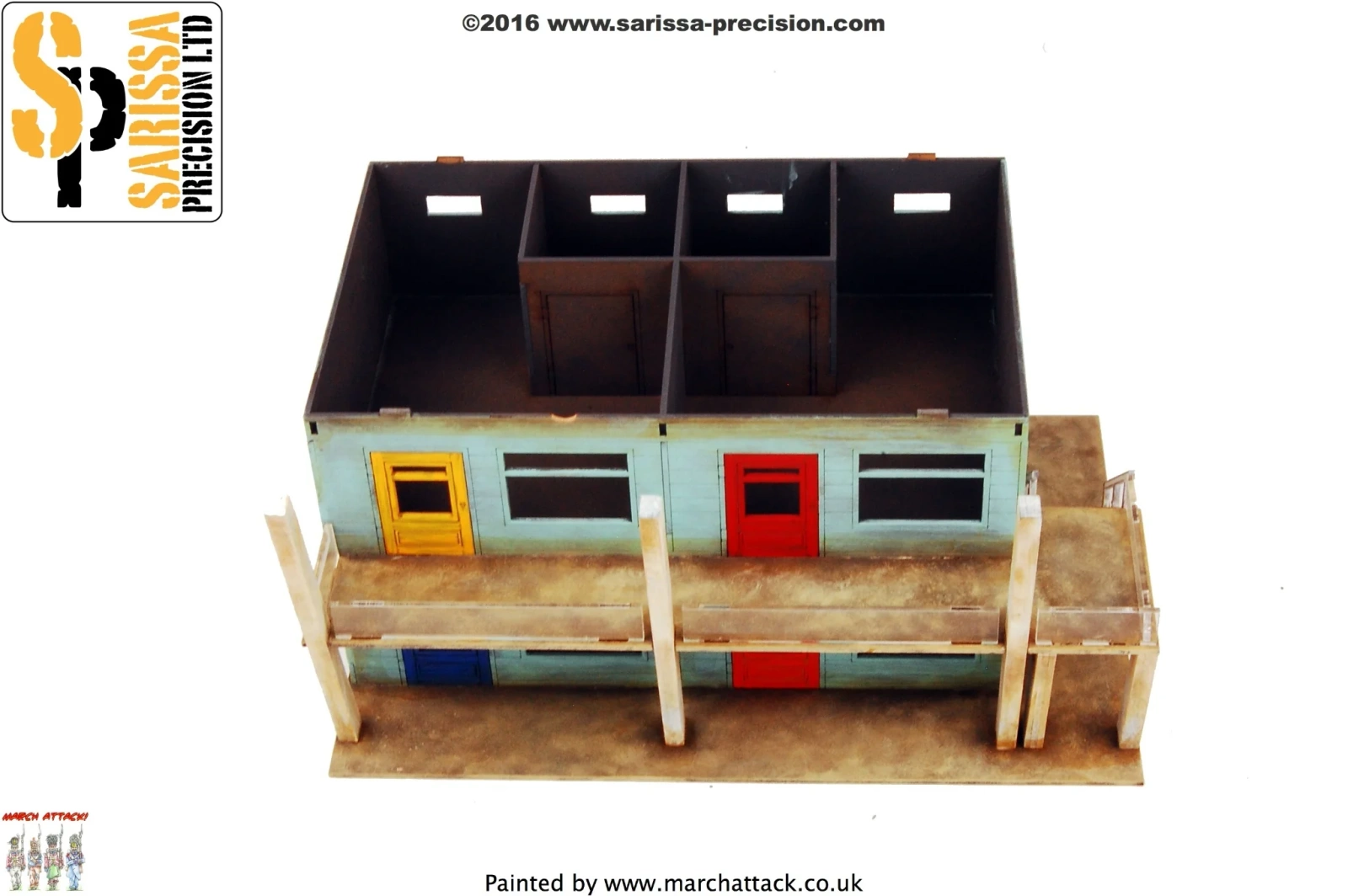 SARISSA – Motel Rooms (Right) to model w skali 28 mm przedstawiający klasyczne pokoje motelowe – nieodłączny element amerykańskiego krajobrazu przydrożnego od lat 20. XX wieku. Motele stanowiły tani i wygodny nocleg dla podróżnych przemierzających nowe autostrady, a na Twoim stole mogą stać się sceną dramatycznych wydarzeń: od kryminalnych intryg po postapokaliptyczne survivalowe starcia.