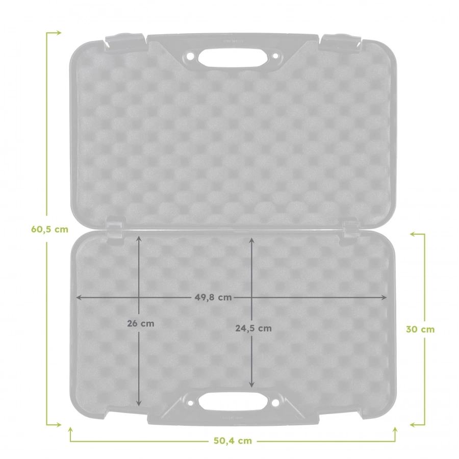 Megaline ECO 50x30x9 cm to wytrzymała i praktyczna skrzynka transportowa, zaprojektowana do bezpiecznego przechowywania oraz przenoszenia różnego rodzaju przedmiotów i akcesoriów. Wykonana z mocnego tworzywa sztucznego, zapewnia skuteczną ochronę przed uszkodzeniami mechanicznymi, a wnętrze wyściełane miękką gąbką o strukturze zębów rekina stabilizuje zawartość i zapobiega jej przemieszczaniu się w trakcie transportu.