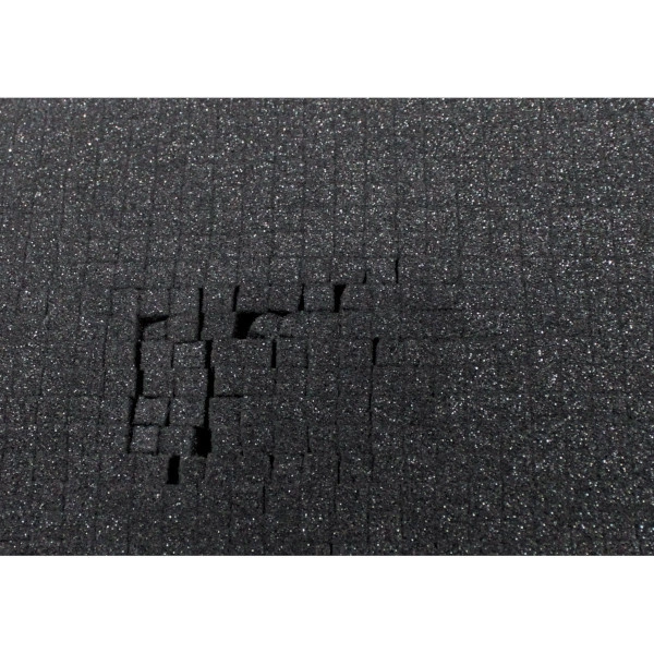 Wewnątrz walizki znajduje się gruba pianka ze spienionego materiału, która amortyzuje uderzenia i chroni delikatne przedmioty przed przemieszczeniem. Jej perforacja pozwala na łatwe dopasowanie wnętrza do kształtu np. kamery, lunety, drona, tabletu czy twardego dysku.