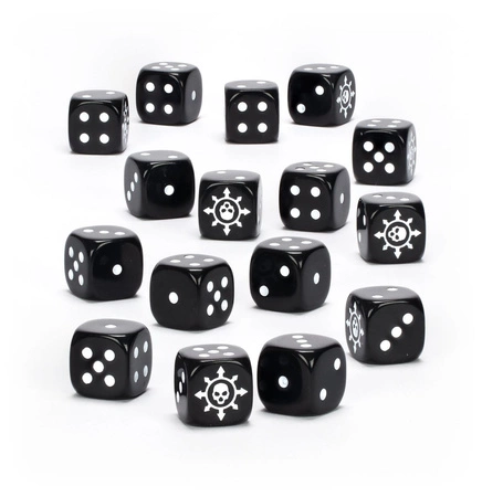 Każda kość w zestawie ma 16 mm i jest wykonana w klasycznym, kostkowym kształcie z zaokrąglonymi krawędziami. Wykonana w kolorze czarnym z białymi oznaczeniami, kości te mają na ściance z '6' symbol Slaves to Darkness, co dodaje im charakterystycznego mrocznego wyglądu. Zestaw kości pomoże ci dodać odrobinę klimatu w trakcie każdej bitwy, wzmacniając Twoje oddanie Chaosowi.