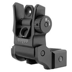 Szczerbina UTG MNT-955 to niskoprofilowy składany przeziernik do karabinków AR15, w pełni kompatybilny z fabryczną muszką oraz kolimatorami.