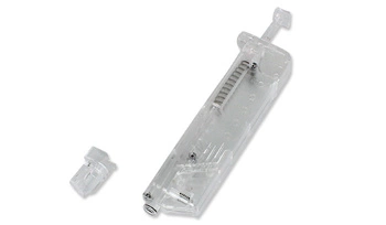 Szybkoładowarka do kulek w kształcie magazynka pistoletowego. Pomieści około