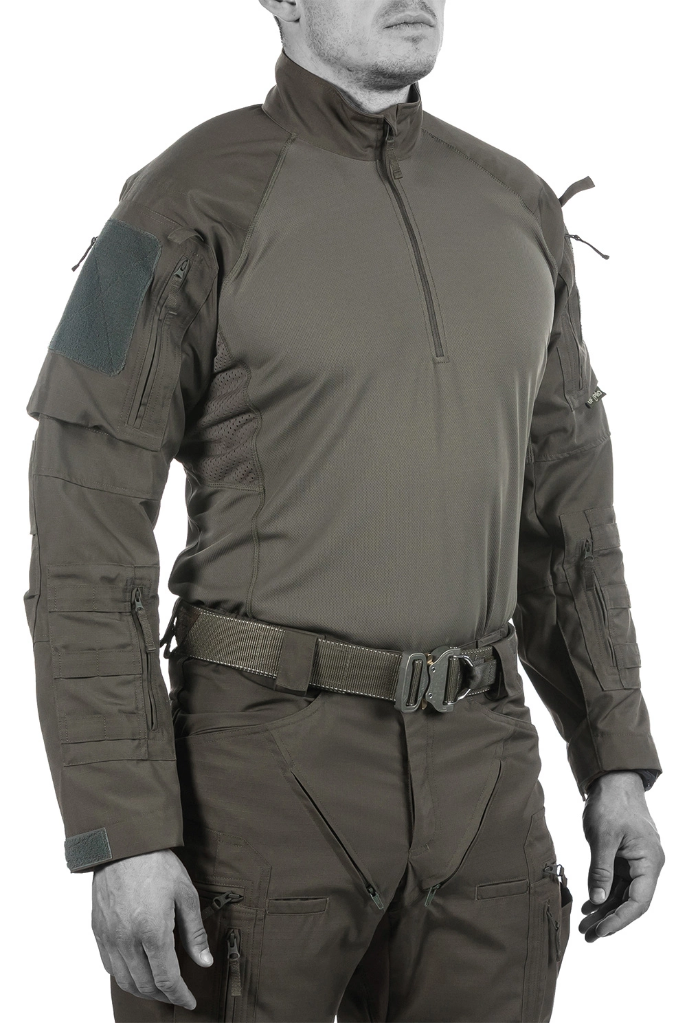 • Ergonomiczne Rękawy: Rękawy zaprojektowane tak, aby były łatwe do zwinięcia, a jednocześnie utrzymywały podkładki łokciowe UF PRO® Flex Elbow Pads na swoim miejscu bez dodatkowego mocowania.