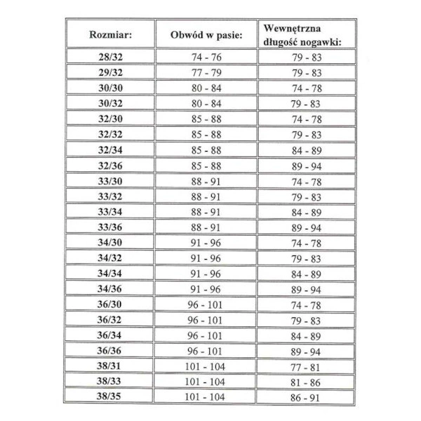 Waga: 0,75 kg (rozmiar 34/34)