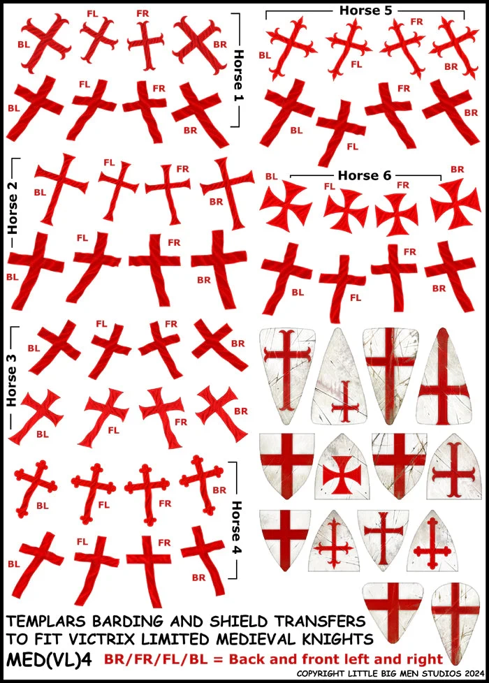 Tarcze są w zestawie, natomiast ozdobne transfery do dekoracji tarcz i bardingu są dostępne osobno.