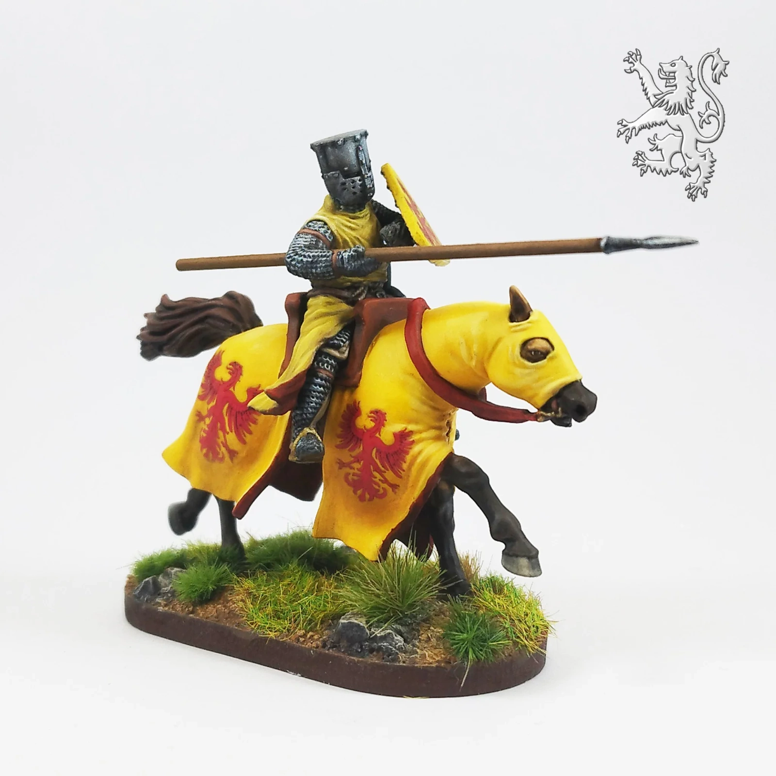 Od starannie odwzorowanej kolczugi, która zachowuje ostrość i wyrazistość nawet na nogach i rękach, przez dynamiczne pozy rycerzy – po naturalne ułożenie w siodle i ruch koni z bogato zdobioną zbroją. Ten zestaw to prawdziwe arcydzieło rzeźbiarskie i inżynieryjne.