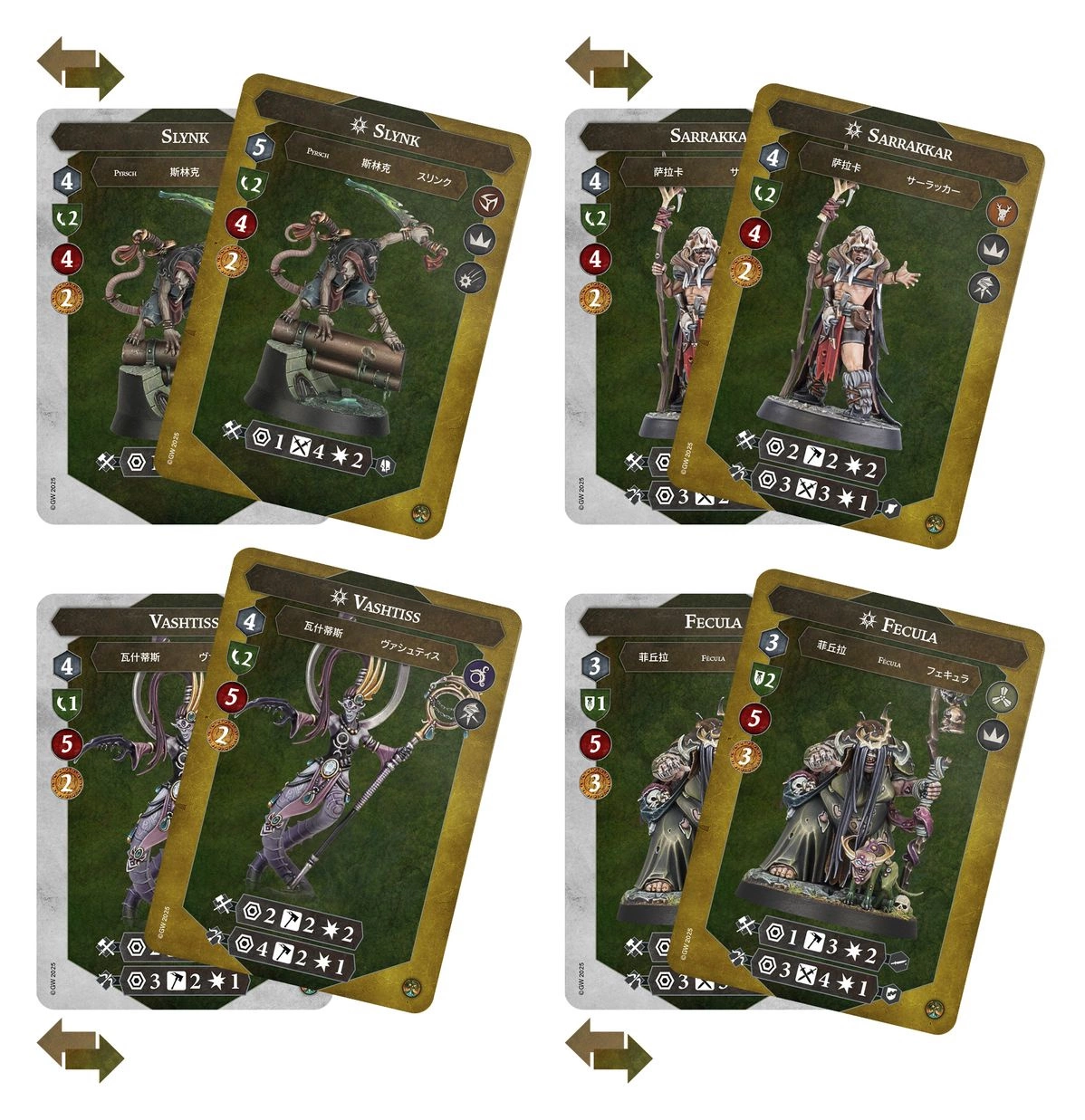 16x dwustronne karty warscroll (w językach: EN, FR, DE, ES, IT, CN, JP)
