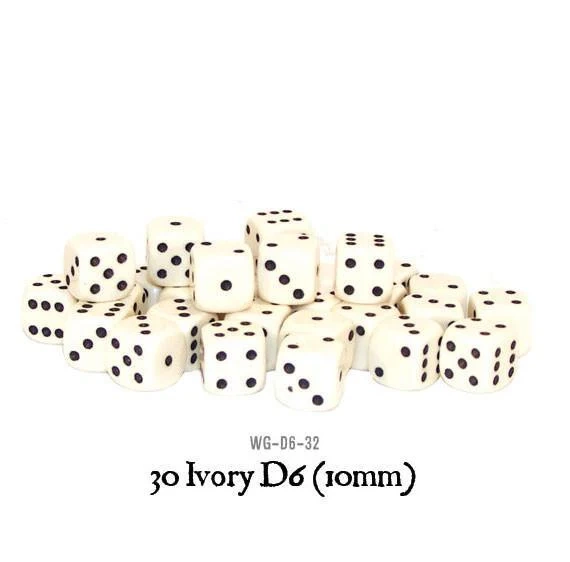 WARLORD - Kostki 30 Ivory D6 (10mm)