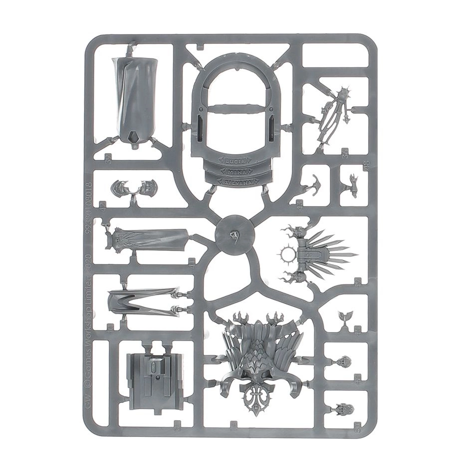 dostarczany z 1x okrągłą podstawą Cytadela 50 mm, 1x dużą latającą podstawą