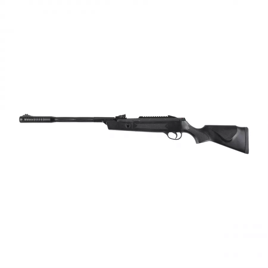 Zintegrowany tłumik dźwięku – skutecznie redukuje hałas bez wpływu na moc wiatrówki.