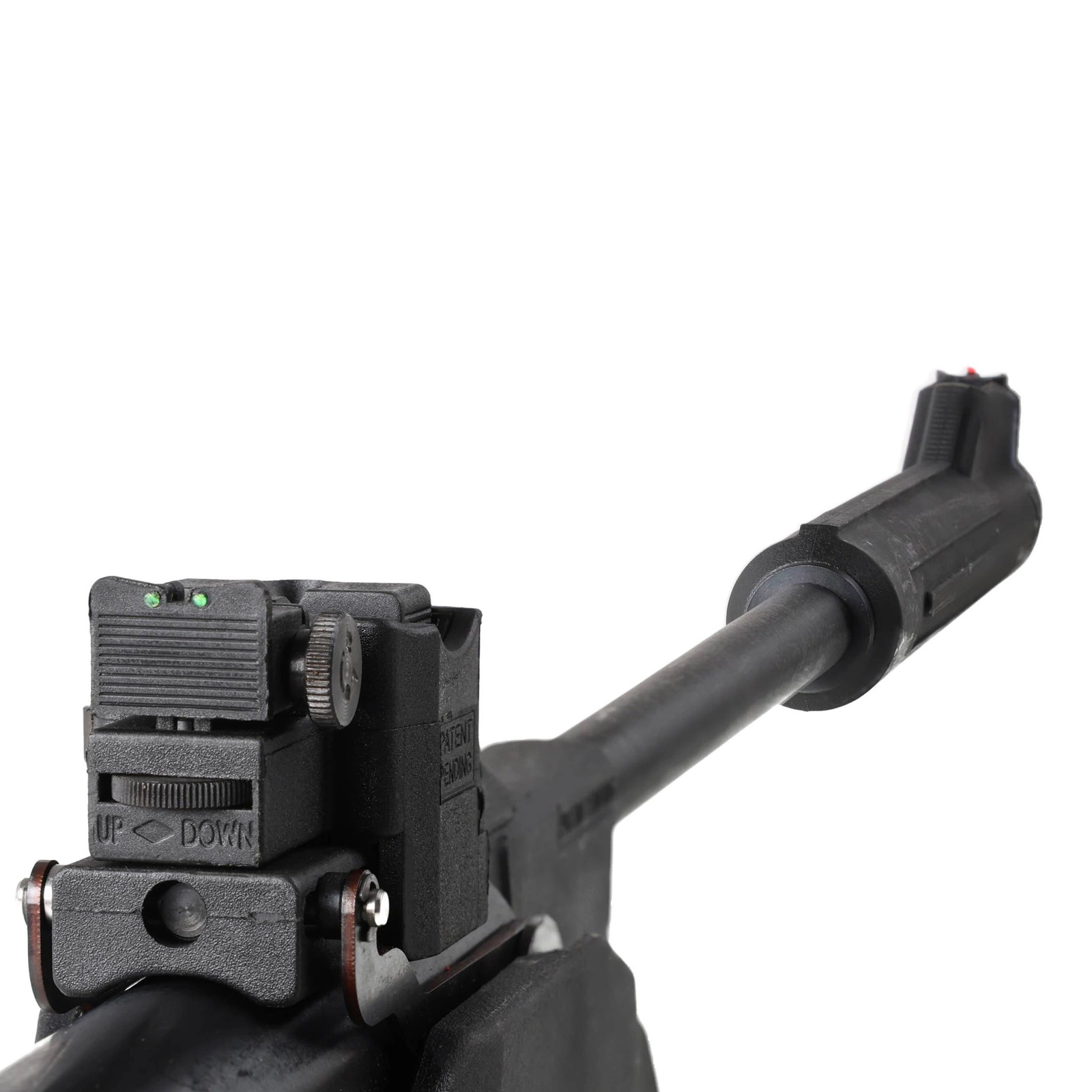 Strzelec ma do dyspozycji regulowany język spustowy typu Quattro Trigger, umożliwiający dopasowanie oporu i drogi do swoich preferencji. Standardem są regulowane przyrządy celownicze TruGlo z włóknami światłowodowymi, ale karabin świetnie współpracuje również z lunetami celowniczymi, które można zamocować na szynie 11/22 mm.