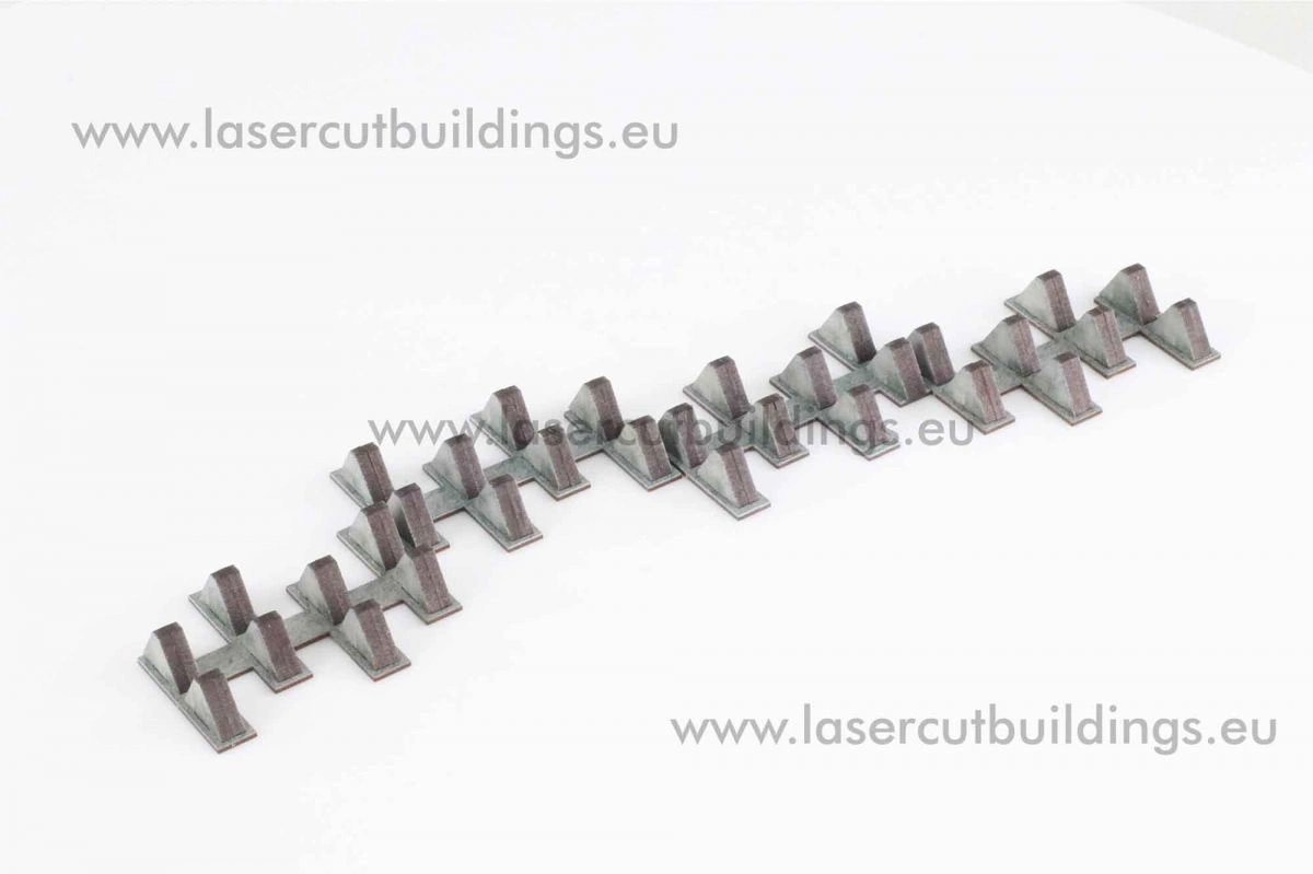 Zęby smoka – Umocnienia I LBHP0048 to realistyczny zestaw przeszkód przeciwpancernych w skali 1:56 / 28 mm, idealny do gier bitewnych, dioram oraz rekonstrukcji scen wojennych. Model przedstawia klasyczne betonowe zapory, znane jako „zęby smoka”, stosowane powszechnie w czasie II wojny światowej jako elementy linii obronnych przeciw czołgom i pojazdom pancernym.